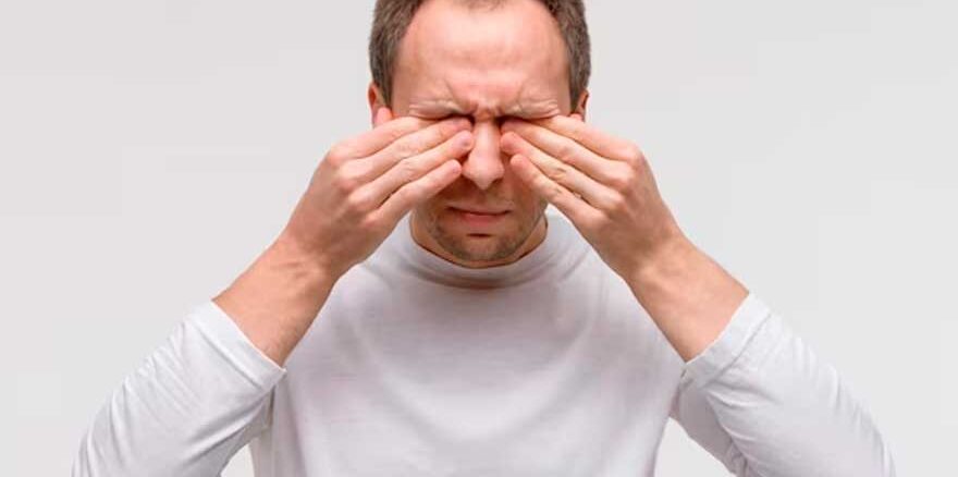 Homem sofrendo com Síndrome do Olho Seco